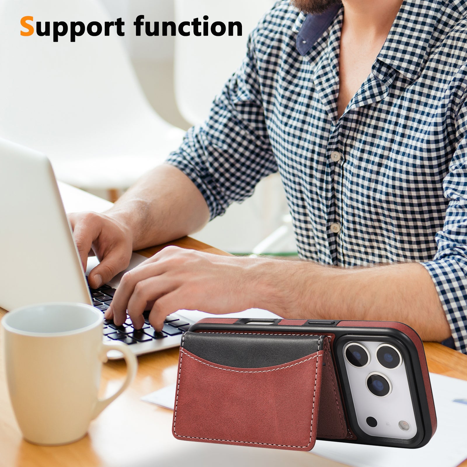 Bold red leather case with dual-side flip card storage, stand function, and a wrist strap—carry essentials with ease, stay hands free, and choose from multiple stylish colors.