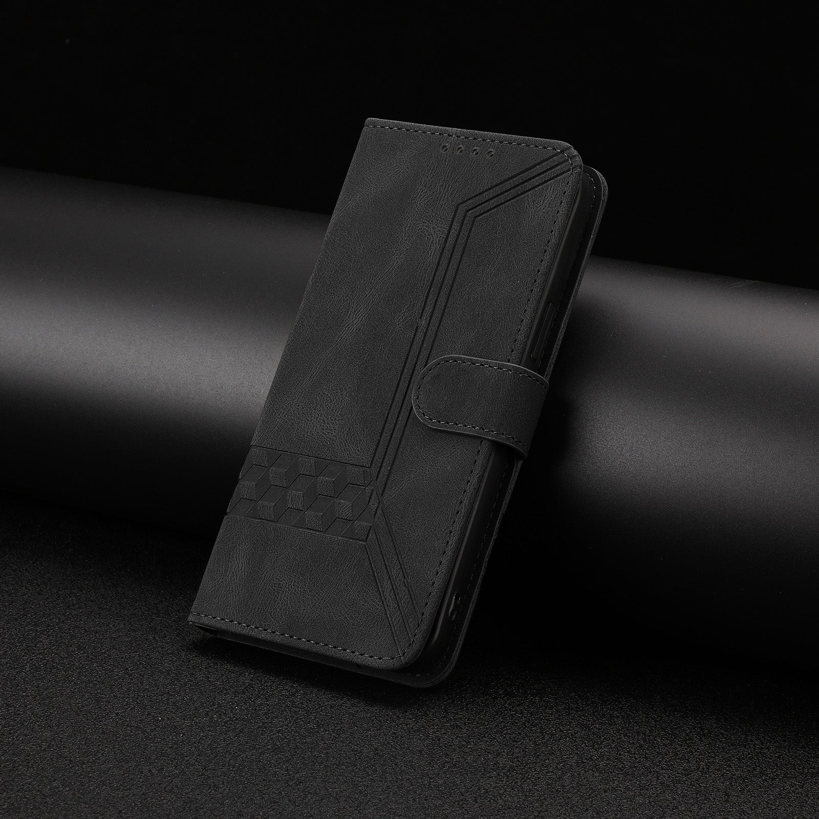 Classic black leather flip wallet case with card slots, foldable stand, and wrist strap—keep essentials secure, enjoy hands-free viewing, and stay stylish every day.
