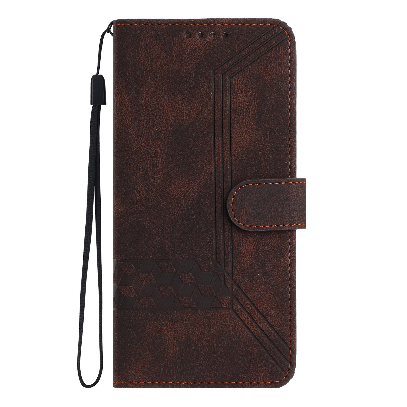Elegant brown leather flip wallet case with card slots, foldable stand, and wrist strap—carry essentials with ease, enjoy hands-free viewing, and showcase refined style.