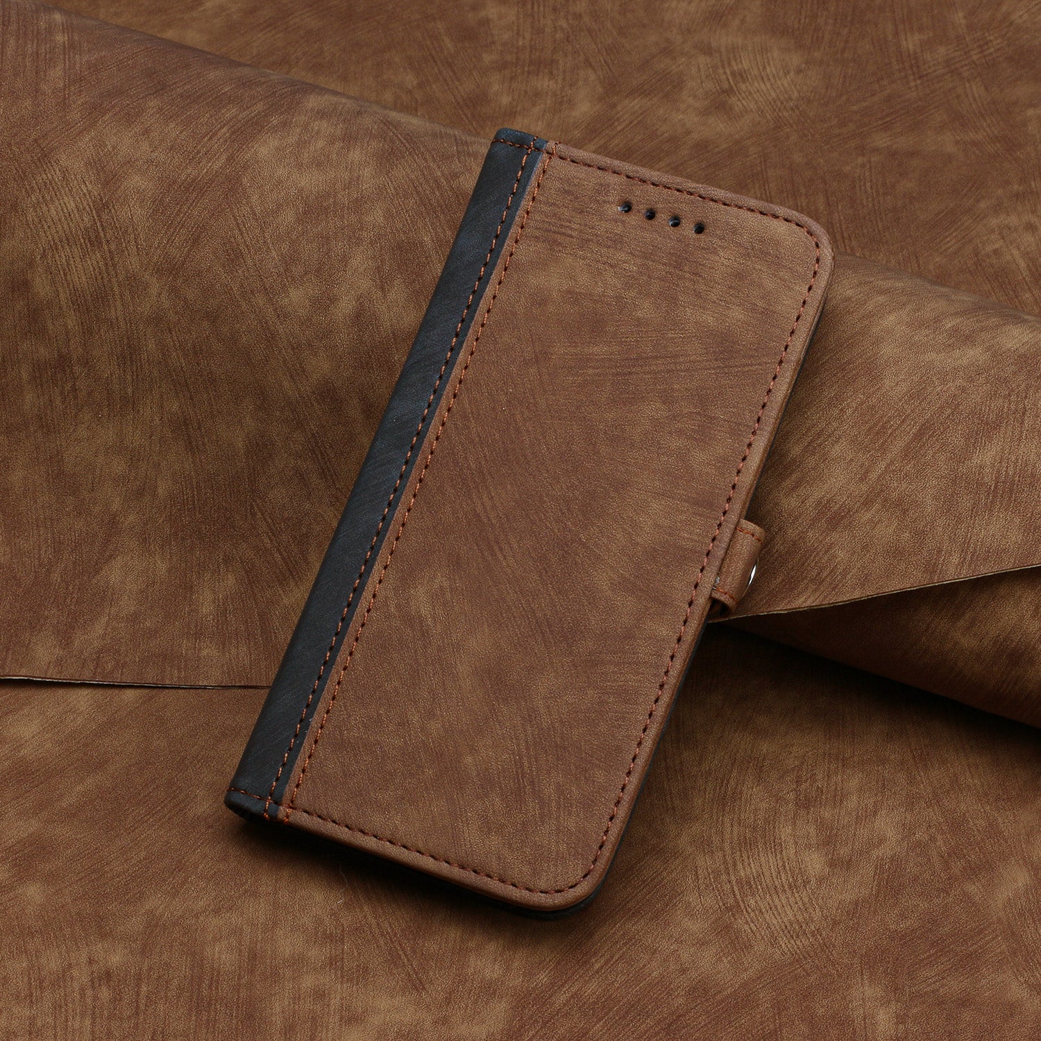 Stylish brown leather flip wallet case with card and cash storage, magnetic closure, foldable stand, and wrist strap—keep essentials secure and enjoy hands-free convenience daily.