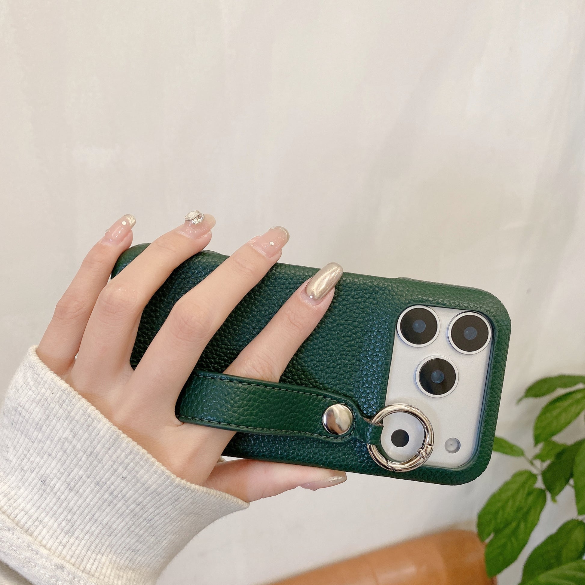 Leather iPhone Case with Wrist Strap And Holder Green-BC25015